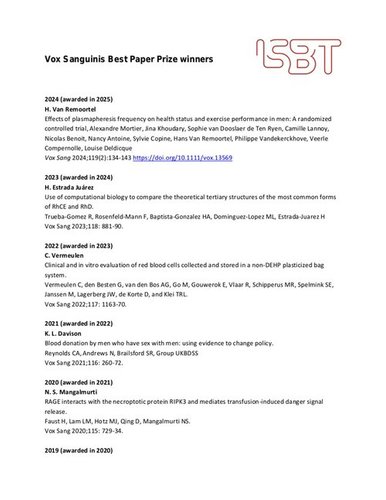 Vox Sanguinis Best Paper Prize